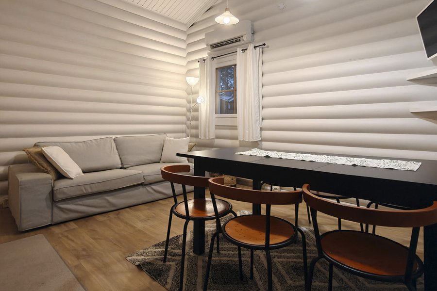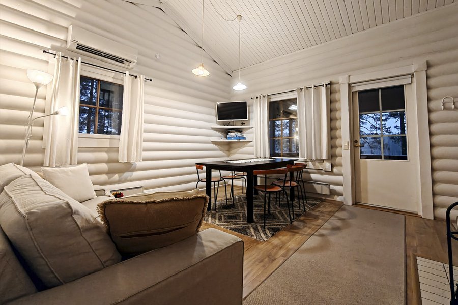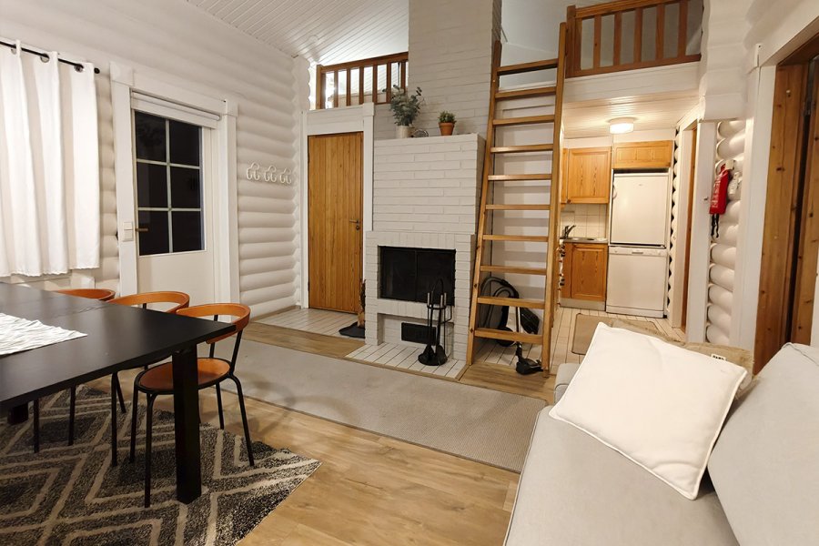 55 m2, 4+2 person Pankkotupa-cottage right by the lake Saimaa. This cottage with great lake view, own sauna and air-conditioning. Two bedrooms, one with 2 single beds and another with a bunk bed. Also a loft with 2 beds (mattresses). Wifi. Number of this cottage in the map is Rantatuvantie 11B.