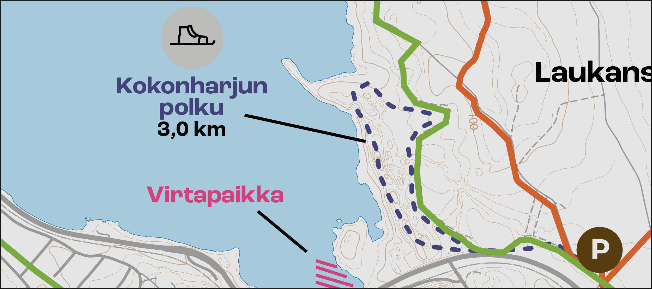 We recommend hiking the route counterclockwise. You can easily add more length to the route by continuing in the direction of Topelius path, looping around Lammasharju.