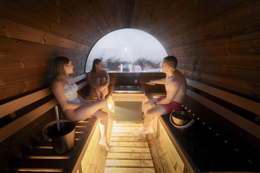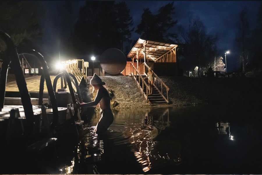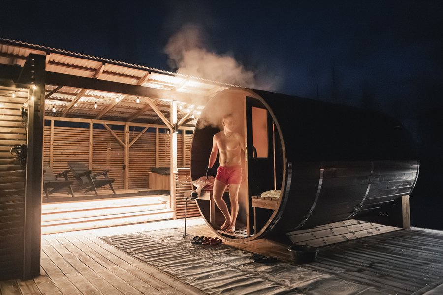 A beach sauna, an atmospheric barrel sauna and additional swimming stairs and a patio will make winter swimming a pleasure. Sauna area is in our shore, 100m from reception. In the beach sauna building, there is separate dressing rooms and showers for men and women. Very short distance to lake! Saunas are mixed, so swimsuit must be weared.