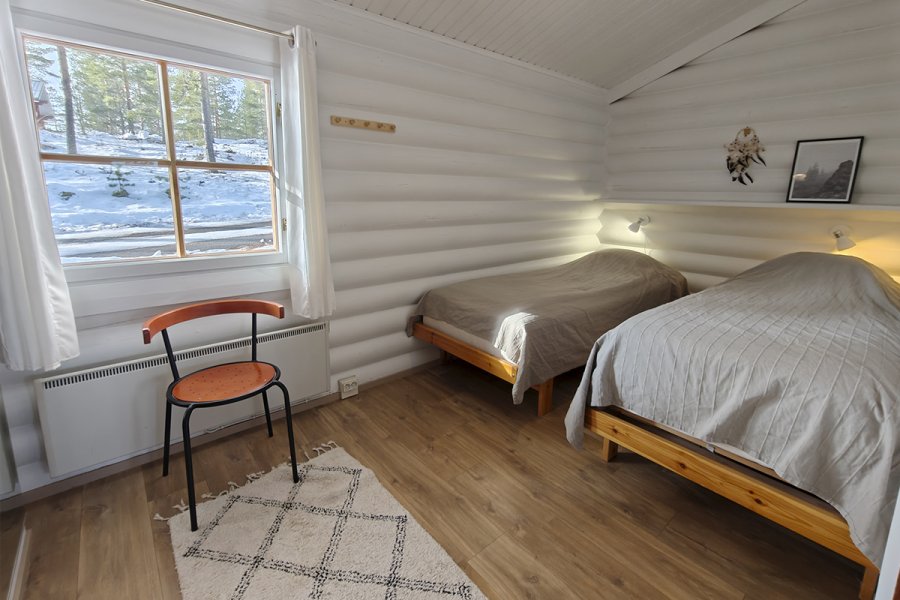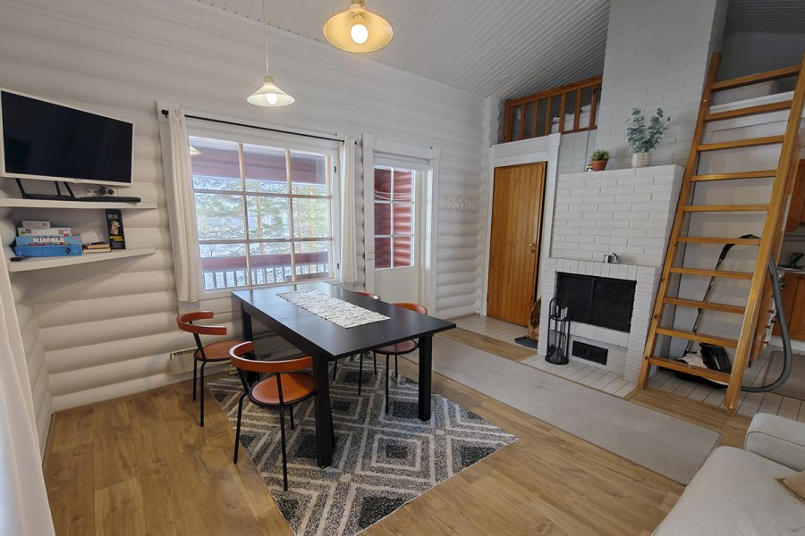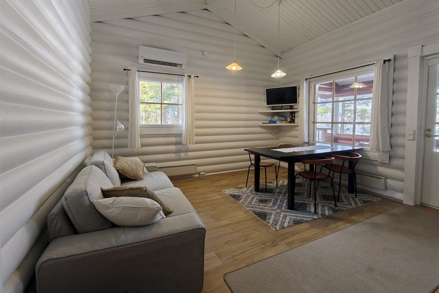 50 m2, 2 mh paritalomökki 4+2 hengelle järven rannalta paritalossa. Kaksi makuuhuonetta, toisessa erilliset sängyt kahdelle, toisessa kerrossänky kahdelle. Parvella 2 nukkumapaikkaa laadukkailla runkopatjoilla. Keittiö on kohteessa alkuperäinen. Ilmalämpöpumppu. Wifi.