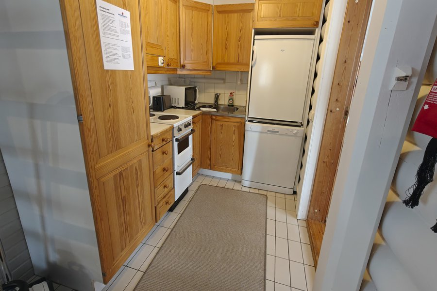 Keittiössä ruoantekovälineet, jääkaappi, vedenkeitin, kahvinkeitin, liesi, astiasto 8:lle, mikro, uuni.